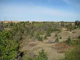 Spruce Woods Provincial Park is located in south-central Manitoba, Canada where the Assiniboine River passes through the delta of sediment left by the last glaciation.[2] An area of open and stabilized sand dunes within the park provides habitat to species of plants and animals not found elsewhere in Manitoba.[2] In descending order of land area contained, the park lies within the Rural Municipalities of South Cypress, Victoria, and North Cypress.