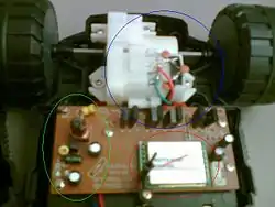 The radio and motor-control circuits are similar to those commonly used in other radio-controlled toys. The radio set operates in the 27/49 MHz range, with non-proportional control over steering and forward-and-reverse movement. The motors and gearboxes used to propel and steer the car are fairly typical of RC toys, though they have been designed for quiet operation rather than speed or power, allowing the vehicle to run almost silently.