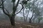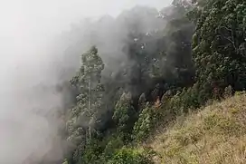 The Sri Lanka montane rain forests is an ecoregion found above 1,000 m in the central highlands of Sri Lanka. Owing to their rich biodiversity, this region is considered to be a super-hotspot within endemic hotspots of global importance.[2] These forests are cooler than lowland forests and therefore they have ideal conditions for growth of cloud forests. These forests classifications tropical sub montane forest, tropical sub-montane and tropical upper montane.[3] Half of Sri Lanka's endemic flowering plants and 51 percent of the endemic vertebrates are restricted to these forests. More than 34 percent of Sri Lanka's endemic trees, shrubs, and herbs can only be found in this ecoregion. Twisted, stunted trees are a common sight in these forests, together with many varieties of orchids, mosses and ferns.[3] The trees of montane rain forests grow to a height 10–15 meters, shorter than the lowland rain forest trees.[4] These high altitude forests are the catchment area for most of Sri Lanka's major rivers.[5]