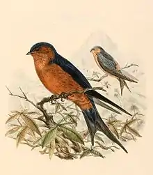 The Sri Lanka swallow (Cecropis hyperythra) is a resident breeder endemic to Sri Lanka. It is closely related to the red-rumped swallow, and was formerly considered a subspecies.