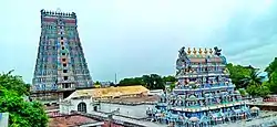 Srivilliputhur (Tamil: [Thiruvilliputhur]), is a Municipality in Virudhunagar district in the Indian state of Tamil Nadu. As of 2011, the town had a population of 75,396. The most important landmark of Srivilliputhur is 11-tiered tower structure dedicated to the Vatapatrasayee (Vishnu), the presiding deity of Srivilliputhur Divya Desam. The tower of this temple rises 192 feet high and is the official symbol of the Government of Tamil Nadu. It is said to have been built by Periyalvar, in the year 788 CE and believed to be the adopted father of the Temple Deity, with a purse of gold that he won in debates held in the palace of Pandya King Vallabhadeva. Srivilliputhur is well known for its ancient heritage and devotional contributions.[1]