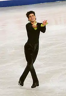 Lambiel landed his first triple toe loop at age ten.[4] As the novice national champion of Switzerland, he performed in the gala at the 1997 World Championships, held in Lausanne.[2] He won the junior national champion for the next two years and spent three years on the junior Grand Prix circuit, winning two medals during this time. Due to the high cost of a season (100,000 Swiss francs), his village created a fan club to help raise funds after his parents' divorce in 1999.[2] Lambiel won his first senior national title in the 2001 season, aged 15. He made his senior debut at the 2001 Europeans, finishing ninth, and was fifth at the 2001 World Junior Championships.