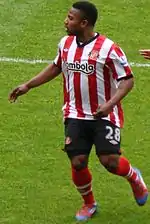 On 29 January 2011, Sessègnon departed Paris Saint-Germain to join English club Sunderland.[34] He signed a three-and-a-half-year contract and the transfer fee was priced at £6 million,[35] and made his debut on 1 February against Chelsea.[36] He made his second start for the Black Cats in 3–2 away loss against Stoke City on 5 February 2011.[37] His first real successful moment as a Sunderland player after a disappointing start came on 23 April, where he scored his first goal for the club in the 4–2 win over Wigan Athletic. He converted a penalty of his own making in the 73rd minute, beating Ali Al-Habsi after being tripped by Antolín Alcaraz. Sessègnon had been forced to play in an unfamiliar role as a lone striker, after injuries to strikers Danny Welbeck and Asamoah Gyan during the match.[38]