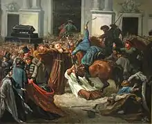 During the Warsaw Uprising of 1794, part of the national Kościuszko Uprising in 1794, Bishop Józef Kossakowski, considered the traitor of the nation, was executed in front of the church (hanged with a great applause by Warsaw inhabitants).[3]