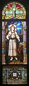 The Chapel of St. Edward the Confessor contains eight stained glass windows depicting various saints, Saints Edward, Anthony, and Andrew, while the other five show scenes from the life of Jesus. The glass was produced by the Carmelite stained glass atelier in Le Mans. Two were designed by Eugène Hucher and sons studios 1888 and four by his student Albert Echivard in 1912. The same French company also completed a large stained glass portrait of the University's founder Father Edward Sorin, which is found in the central stairwell. In addition, St. Edward's second floor has a mural by the Vatican muralist Luigi Gregori, whose work also adorns the Main Building, and the Basilica of the Sacred Heart. The mural depicts a meeting between Father Sorin and the local Native Americans at the founding of the University in 1842. The residence hall is the oldest building on campus currently in use as an undergraduate dormitory, and its original wing is constructed of the signature yellow bricks dredged by Holy Cross religious from the marl found in the University's two lakes.