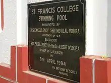 - 8 April 1994: Under the tenure of Father Anthony D’Souza, St. Francis' College Swimming Pool was inaugurated by Shri Motilal Vora, the then governor of U.P. and blessed by Rt. Rev. Dr. Albert D’Souza.