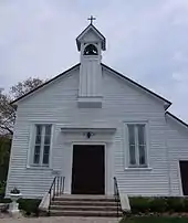 St. James on-the-Lines (often written as St. James-on-the-Lines or St. James On-the-Lines) is a historic Anglican garrison church in Penetanguishene, Ontario. The church is still in use today serving as the Anglican parish church in Penetanguishene for services from Easter to Thanksgiving. The church is protected by a heritage conservation easement under the Ontario Heritage Act.[1] There are two suggested origins for its full name. The first suggestion comes from its location on the lines of communication or road from the former military establishment at Penetanguishene to the south.[2] The second possible meaning is from the old Victorian military usage of Lines for the rows of tents or buildings in a military camp.[3] The church was constructed close to the original military establishment buildings which lined the road.