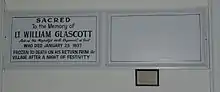 There is a double memorial of painted wood on one wall. One side commemorates a Lieutenant William Glascott who froze to death after falling from a cutter while returning from a "night of festivity" in the village. The other side is left blank, the most common explanation is that it was intended to commemorate a companion officer, who was expected to die as a result of the same accident but who eventually recovered and was posted elsewhere. A second story is that it was left blank as a warning to soldiers in the congregation against the dangers of intemperance and that their name could be added.[2]