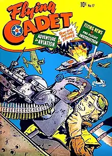 By the early 1940s, St. John was editor of the 17-issue magazine Flying Cadet (Jan. 1943 – Oct. 1944). Like Model Builder, it mixed editorial prose with comics-style instructional featurettes. That changed with its final issue, a standard comic book that included fictional adventure ("Buzz Benson" by Maurice Whitman and George Kapitan; Lt. Lela Lang, art by Kapitan, about a female bomber pilot) and humor ("Grease Pan Gus") features. The company — also called Flying Cadet — additionally published American Air Forces #1 (Oct. 1944), as well as some issues of Dynamic Comics and Punch Comics.[1]