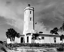 In 1858 the Old St. Johns River Light was erected. In order to avoid the problems of its predecessors, it was constructed away from the shoreline and was substantially taller.[4] It was in service for over 70 years until finally being decommissioned in 1929. That year it was replaced by the St. Johns Lightship (LV-84), moored about 8 miles (13 km) offshore of the river's mouth.[2][4] The oldest surviving building in Mayport, the Old St. Johns River Lighthouse was placed on the National Register of Historic Places in 1976 and restored in 1980.[4][5]