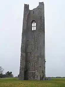 St. Mary's Abbey in Trim, County Meath, Ireland is a former house of Augustinian canons dedicated to the Blessed Virgin. The abbey was situated on the north bank of the River Boyne, opposite Trim Castle, on land given to St. Patrick[1] who is often credited with founding the abbey.[2] The abbey was a prominent pilgrimage site, famous for the healing power of its statue of the Virgin Mary, until its dissolution under Henry VIII during the Reformation.[3] Little remains of the abbey except for the Yellow Steeple, the ruin of the abbey bell tower named for the yellow color reflected by the stonework in the setting sun,[4] and Talbot's Castle, an abbey building converted to a manor house.