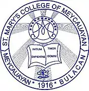 St. Mary's College of Meycauayan (St. Mary’s College, St. Mary’s, ESMA, SMCM) is a Catholic school in Meycauayan, Bulacan, Philippines. It is administered by the Religious of the Virgin Mary. It was formerly called Escuela Catolica de Meycauayan, and was founded in 1916. It provides Preparatory, Primary, Secondary, and Tertiary education.