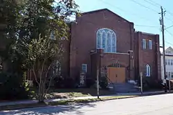 St. Peter's AME Zion Church is a historic African Methodist Episcopal church located at 615 Queen Street in New Bern, Craven County, North Carolina. It was built between 1923 and 1942, on the site of the 1914 church building which was destroyed by fire in 1922. It is a large three bay by seven bay, rectangular brick church building in the Late Gothic Revival style. It features a gabled nave flanked by two-story truncated stair towers. Also on the property is the contributing 1926 parsonage; a 2+1⁄2-story, frame American Craftsman style dwelling. It is known within the denomination as the "Mother Church of Zion Methodism in the South," and the oldest existing African Methodist Episcopal congregation in the South.[2]