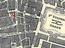Due to the shortage of clergymen after the Restoration, the new parish of St. Peter in 1680 consisted of the old parish, the whole of St. Kevin's, almost all St. Stephen's and a good part of St. Bridged's. Due to the large size of the parish, several chapels-of-ease were required to administer it. These included St. Kevin's in Camden Row, St. Stephen's in Mount St. and several others. The parish corresponded to the civil parish of St. Peter's.[5]