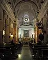 With its tall, brick façade and towering bell tower, St. Peter's Church is the single largest and most distinctive building in Old Jaffa. The interior of the church is reminiscent of cathedrals in Europe, with a high vaulted ceiling, stained glass, and marble walls. The stained glass was manufactured in Munich by renowned artist Franz Xaver Zettler. The four panels in the interior of the church depict episodes from the life of St. Peter, including the miraculous catch of fishes, the giving of the keys, the transfiguration of Jesus on Mount Tabor and the washing of the feet at the Last Supper. With the exception of depictions of Tabitha, Francis of Assisi, and the Immaculate Conception, all of the other windows in the church depict Spanish saints, which is unsurprising since the present building was erected by the Spanish Empire. Also of note is the pulpit which is carved in the shape of a lifelike tree.[1]