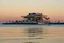 On July 9, 2015, the city council approved on a $5.2 million deal to demolish the current pier and to finalize the Pier Park.[67] The demolition of the pier began on August 18, 2015.[68][69] On November 17, 2015, the St. Petersburg Pier structure was fully demolished.[70][71] After the demolition of the structure, the approach of the pier was next which was estimated to be fully demolished four months after starting. The entire demolition was expected to be done by February 2016,[72] however it was completed in late 2016 on the account of safety concerns from the decay of the construction materials that were reinforced over the lifetime of the pier's approach and base structure.[73][74] A redesign on the pier was presented on March 17, 2016 with mixed reactions from officials, though it was viewed positively from the cities council.[75] Due to the redesign, budget cuts were soon imposed on the Pier's concepts.[76]