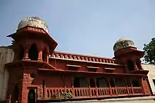 The campus is located in the North Campus of the University of Delhi and designed by the distinguished Welsh architect Walter Sykes George. The construction was completed in 1941.[23] The college had previously functioned from a campus in Kashmiri Gate, Delhi, housed in distinctive Indo-Saracenic Revival architecture. This building now houses the Election Commission of Delhi. In fact, some college playing fields are still located between Kashmiri Gate and Mori Gate.[12] Facilities for a number of sports are provided for on the college campus. The Francis Monk Gymnasium, the Ladies Common Room, and the Junior Common Room provide facilities for indoor sports and recreation. A chapel is open to all members for worship and meditation.[8]