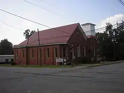 St. Thomas African Methodist Episcopal Church is a historic African-American church in Hawkinsville, Georgia, located at 401 North Dooly Street. It is a large brick building on the northwest corner of North Dooly Street and Second Street, built 1908-1912, replacing a wood building built in 1877. Some of its historical integrity was lost due to non-historic additions and alterations. Restrooms were added in the 1950s, ceiling tiles in the 1960s, carpeting in 1982, interior partitions and new windows in 1987, new steps in 1988, and new pews and air conditioning in 1989. It has a steeply pitched gable-front roof. The interior has an open space with a pulpit, with three sections of pews. It is one of the last remaining buildings of a historically African-American neighborhood and was the largest and only brick building in the neighborhood.[2]