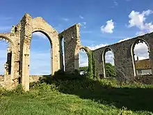 St Andrew's Church is a partly redundant Anglican church in the hamlet of Covehithe in the English county of Suffolk. It is recorded in the National Heritage List for England as a designated Grade I listed building,[1] Part of the church is in ruins and this is under the care of the Churches Conservation Trust.[2] The church stands on a lane leading directly towards the sea, in an area of coast which has suffered significant ongoing erosion.[2][3] The parish of Covehithe has been combined with neighbouring Benacre.[4]