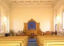 The interior architecture of the church reflects the older Presbyterian tradition, with a central pulpit and minimal decoration. A memorial to Scottish servicemen lost in the Italian campaign has a prominent position.