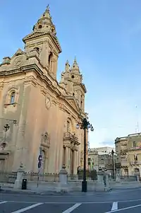 The present church was inspired by the Co-Cathedral in Valletta with a Mannerist architecture on the exterior and a baroque architecture on the interior. It was built on the designs of Dun Giulju Muscat. Its construction started in 1634 and completed in 1635.[1]