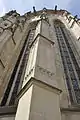 The late-Gothic St Joseph's Chapel at the north part of the cathedral was completely removed. A neo-Gothic tower which was crossing the main and the side aisles, flèche was created. Steindl's primary plan was to rebuild all the neo-Gothic additional building and components in the cathedral. But those suggestions were declined by the commission and they requested a cheaper exchange of old stone parts for the new ones. Re-Gothicisation of the towers was not realized due to a lack of funds, reflected in a cheaper construction material. During the Exchange of a base system from 1878–82 cheap but low-quality sandstone from the nearby Spiššké Vlachy stone-pit was used.[12] Its quick dilapidated outer surface resulted in removal of pinnacles and gargoyles because they endangered pedestrians. With the next reconstruction after 1882 good quality sandstone from Banská Bystrica was used.[11] The main Master builder of the major reconstruction from 1877–80 was Josepf Weber.