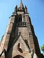 St John's is a large sandstone structure designed in the Gothic Revival style and built in the 19th century. It features a square tower, pinnacled spire, slate roof and dressed stonework.[4]