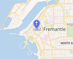 The present Church of St John is the second of that name in Fremantle. The first was founded after petitions were made in 1839 to the newly arrived Governor of Western Australia, John Hutt, to create an Anglican church on King's Square.[2] It stood at the centre of the square at the end of the High Street. The expense of building the church was underwritten by Daniel Scott, who was an enterprising harbour master and supporter of the Church of England.[3]