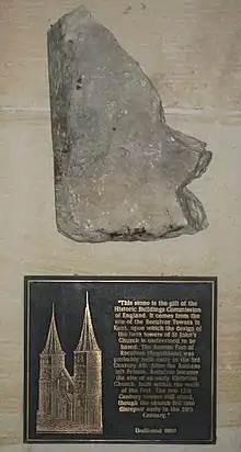 Bishop William Broughton, when laying the foundation stone on 11 August 1852 (before his return to England) also changed the dedication of the church when he noted that he laid "the foundation stone of a Church to be rebuilt in this place named the Church of St John the Evangelist".[2][40][41]