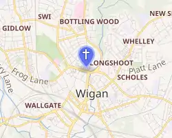 St John's Church is a Roman Catholic Church in Standishgate, Wigan, Greater Manchester. It is within 200 feet of another Catholic church, St Mary's. Construction on both churches, was done in a spirit of competition, so they both were finished in the same year, 1819. The competition was because St John's Church was originally served by the Society of Jesus, whereas St Mary's was always served by priests from the diocese.[1] However, the Jesuits gave the church to the Archdiocese of Liverpool in 1933. It is a Grade II* listed building and the sanctuary inside the church was designed by Joseph John Scoles.[2]