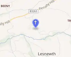 The parish church is dedicated to St Julitta[2] (Juliot) and stands in an isolated location above the valley of the River Valency at grid reference SX 129 912[3][4] The parish church of Lanteglos by Camelford and the castle chapel at Tintagel are also dedicated to St Julitta. The church is in the St Juliot civil parish of northeast Cornwall,[5]