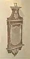 In 2011 the medieval carved screen of c.1500, originally from St Mary's church in Newtown, was re-positioned in Llanllwchaiarn church. Fenton thought the screen was perhaps the most perfect thing of the kind in the kingdom and the Rev John Parker described it in 1829 as a world of Gothic art…..with the highest luxuries of workmanship and colouring. The largest part of the screen to survive is a length with five bays to either side of the Tudor arched door, its spandrels with cusped circles. Double ogee tracery heads make an inventive display of circles, quatrefoils and wheels. The bressumer has intricate trails of running ornament, incorporating leaf designs, together with flower, vine, pomegranate and seaweed.the carving is still coloured in gold, red and green. A section of coving is also preserved, with its elaborate panels and drop scrolling.[4]