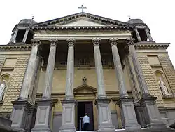 The St Patrick's Basilica or Oamaru Basilica, as it is popularly known because of its style of architecture,[1] is a Catholic church in Oamaru, New Zealand. It was designed by the prominent New Zealand architect Francis Petre and is one of his most celebrated works. It is one of the most important historic buildings of Oamaru and of the North Otago region. The Basilica's classical portico and three domes are an admired feature of the Oamaru townscape and the building is particularly noted for the high quality of the stone carving and fine plasterwork of its architectural features.[2] The Basilica "must surely have one of the most noble church interiors in the country. Built entirely of Oamaru stone the exterior has weathered more than one would have expected, but inside the church glows with reflected light from the creamy stone which is virtually in its original state." "The interior is bathed in abundant natural light, and with clear glass rather than stained in the high nave windows, the quality of light is enhanced."[3]