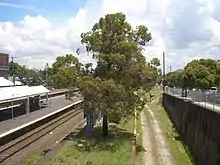 To the west of the station lies an incomplete island platform. It was originally built in the 1970s as part of the construction of the Eastern Suburbs line when the alignment between Erskineville and Sydenham was expanded to accommodate six tracks. This was abandoned as a cost-cutting exercise. The CityRail Clearways Project envisaged reviving this plan, with stopping trains serving only the newly completed western platforms. However, this project was cancelled in November 2008.[6]