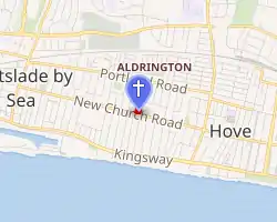 In 2000 the Brighton and Hove Deaneries Pastoral Strategy Review Group was established on the instruction of the Diocese of Chichester to consider the future of churches in the two deaneries. The group's report, published in June 2003, recommended the closure of St Philip's Church and its conversion to alternative uses. This conclusion was based on its proximity to St Leonard's Church (whose status as an ancient parish church gave it more importance within the deanery) and the inability of the churches to cover their maintenance and other costs.[20] As of 2012, the church is still open, and offers two services every Sunday.[21] The parish is bounded by Portland Road, Westbourne Street, Westbourne Place, the seafront, Wish Road and Coleman Avenue on the borders of Hove and Aldrington.[22]