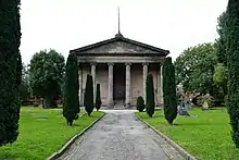When it was built, Stockport was in the county of Cheshire, and it was the only church in that county to receive money from the first parliamentary grant administered by the Commission. It was designed by the architect George Basevi, and was one of his earlier works.[4] It is his only surviving Commissioners' church.[2]