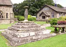There is a sundial in the churchyard, to the south-east of the chancel. Possibly dating from the 17th century, the base is constructed of sandstone. There are six square steps with a turned column. The column has a cyma moulded capital and is topped by an octagonal brass dial. English Heritage has given the sundial a separate Grade II listing.[5]