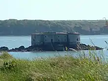 Stack Rock Fort is a fort built on a small island in the Milford Haven Waterway, Pembrokeshire. A 3-gun fort was built between 1850 and 1852, and then upgraded in 1859 with a new building that completely encased the original gun tower. It is now a Grade II* listed building[1] and a Scheduled Monument (registered SAM number PE334).