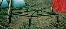 The name itself and evidence from surviving vernacular buildings with wooden 'feet' suggest that at first the staddles or supports were made of wood, such as at Peper Harow granary in Surrey.[3] Stone staddles were longer lasting and a more reliable means of supporting structures which were sometimes a considerable weight.
