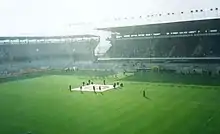 Letná has frequently hosted international matches, in October 1989 the venue saw a crowd of 34,000 watch home side Czechoslovakia defeat Switzerland in a qualifying match for the 1990 FIFA World Cup.[3] After the dissolution of Czechoslovakia, Letná continued as an international stadium, hosting matches of the Czech Republic national football team from 1995, including qualification matches for UEFA Euro 1996, in which the Czechs defeated the Netherlands and Norway.[4]