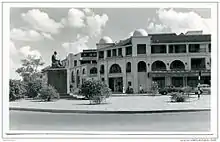 The Stanley Hotel was originally opened in 1902 as the Victoria Hotel,[2] four sparsely appointed rooms above Tommy Wood's general store, where Mayence Bent (née Woodbury) ran the store and its post office, and also worked as a dressmaker and milliner. Mayence had taken the job at the store in 1898 after moving to Nairobi with her husband (and step-brother)[3] William Stanley Bent, and their daughter Gladys.[4] Mayence would bring fresh butter and vegetables from her husband's 40-acre (16 ha) farm in Kikuyu for the hotel's guests. In 1904, after a disagreement with Wood,[2] Mayence entered into a business arrangement with a farmer from Sotik, Daniel Ernest Cooper, and opened the first Stanley Hotel.
