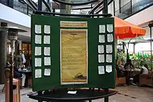 The café is named after a Naivasha thorn tree (Acacia xanthophloea)[23] in its centre. Travellers used to pin notes to others onto the thorns of the tree. The current tree is the third of the same variety. The first was planted in 1961, and when it was ailing a new one was planted in its place. This new tree began to droop, and in 1997 was replaced with the current tree. During the planting ceremony, a time capsule was buried beneath it, to be opened in 2038.[10] The first post office in Nairobi was based here, and tourists still leave messages and advertisements.[24] The forum of the largest travel guide book publisher, Lonely Planet, is named the "Thorn Tree travel forum" after this tree.[25]