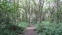 The park has a diverse array of wildlife including Reeve's muntjac and red fox. There have also been reported sighting of European badger, weasel and even wild boar in the park although these "sightings" are unconfirmed. Bird life is also abundant within the park which contains several members of the tit family, blackbirds, magpies and crows. The park is also home to tawny owls, buzzards, sparrowhawks and kestrels. There is access from Kerry Avenue and Dennis Lane.[1]