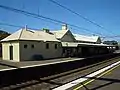 The "second class station" is a brick building with a central open waiting room and enclosed rooms to either end (painted to all but Trafalgar Rd elevation). The building has a hipped roof form with original chimneys to either end. The awning extends from below the line of the eaves and the roofing material for both the awning and the roof is corrugated steel, which has replaced the original corrugated galvanised iron roofing. The awning is to the same detail as the one on Platform 1–2, supported by original cast iron columns, new corrugated metal roof sheeting, modern services and conduits are fixed to original elements. The brick wall to Trafalgar Road has been extended to both the east, to full height adjacent to the former ticket window, and to the west to provide toilet facilities. The toilet addition (c.1900) to the far west of the building is accessed through an opening in an original external wall.[2]