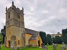 St Peter's Church was rebuilt in the 12th century, the tower added in the 13th century and the whole building thoroughly restored in 1896. The Tithe Barn was built in the 14th century for Tewkesbury Abbey. The bell tower contains a ring of five bells dating from (in order 1-5 wish founders) 2014 (Whitechapel, London) 1625 (Worcester Foundry, possibly James Keene), 1904 (Bond of Burford), 1826 (Rudhall, Gloucester) and 1634 (Unknown founder). They are hung for English Change Ringing and were restored in 2015. The largest (Tenor) bell is a maiden (untuned) bell and is listed for preservation. It weighs just over 11cwt.[4]