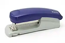 Saddle stitch staplers, also known as "booklet staplers," feature a longer reach from the pivot point than general-purpose staplers and bind pages into a booklet or "signature". Some can use "loop-staples" that enable the user to integrate folded matter into ring books and binders.