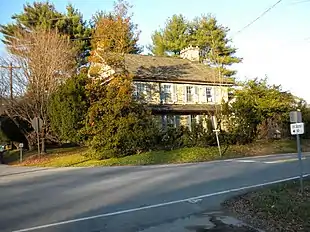 Brothers George and Michael Harlan were Quakers who were born in Durham, England and immigrated to Pennsylvania about 1687 from County Down, Ireland. Michael's son George Harlan built the house in the forks of the Brandywine c.1724. In that year the Free Society of Traders sold 7,000 acres (28 km2) to Nathaniel Newlin, which became Newlin Township in Chester County. Newlin immediately sold some of the land, including 169 acres (0.68 km2) in the forks of Brandywine Creek sold to George Harlan. A son, Joel, was born to George and Mary Harlan in 1724 in Newlin Township, presumably in their new house. The house was probably the first in the township. Tax assessments in the township were first made in 1739, and until 1760, Joel's older brother John Harlan paid the taxes on the house and farm. Sometime between 1758 and 1760 Joel returned to Newlin Township after living in other locations in Chester County, took ownership of the farm and built an addition to the house. Both John's and Joel's families apparently lived in the same house, but Mason and Dixon's Journal always refers to the "John Harland farm" or simply the "Harland farm." John Harlan died by drowning in the Brandywine in 1768. The original house is two stories measuring 25 feet (7.6 m) by 16 feet (4.9 m), constructed of stone. The c.1758 addition was also constructed of stone and measures 25 feet (7.6 m) by 13 feet (4.0 m). A small frame addition was built in the nineteenth century.[3]