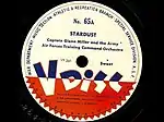 By 1935, while radio announcers commonly credited the orchestra only, Carmichael was mentioned as the composer of the song during introductions because of its popularity.[34] The same year, saxophonist Coleman Hawkins recorded the song on March 2 in Paris. Compagnie de Gramophone Française released it with the catalog number K-7527.[35] The song was often performed by Art Tatum, Garnet Clark, and Fats Waller. Mills recorded the song himself with his multiple bands, and recorded versions by the Mills Blue Rhythm Band and Cab Calloway.[36] In 1936, for the first time in its history, RCA Records pressed two versions of the same song by two different artists on a single record: Tommy Dorsey on one side and Benny Goodman on the other. Goodman used an arrangement by Fletcher Henderson, while Dorsey's version featured the vocals of Edythe Wright.[14] By 1937, Goodman remarked that Carmichael's tune was the most popular dance number of his repertoire.[37] "Stardust" became a standard of big band music.[38]