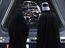 An early draft of Return of the Jedi features two Death Stars at various stages of completion.[28] According to the Star Wars Encyclopedia, the second Death Star had at its "north pole ... a heavily armored 100-story tower topped by the Emperor's private observation chamber."[29]