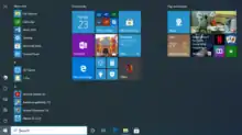 Windows 10 re-introduced the Start menu in a revised form. It uses a two column design similar to Windows 7's version, except that the right side is populated by tiles, similarly to Windows 8's Start screen. Applications can be pinned to the right half, and their respective tiles can be resized and grouped into user-specified categories. The left column displays a vertical list, containing frequently-used applications, and links to the "All apps" menu, File Explorer, Settings, and power options. Some of these links, and additional links to folders such as Downloads, Pictures, and Music, can be added through Settings' "Choose which folders appear on Start" page. The Start menu can be resized, or be placed in a full-screen display resembling the Windows 8/8.1 Start screen (although scrolling vertically instead of horizontally).[5][6] The Start menu also enters this state when "Tablet mode" is enabled.[7][8][9][10]